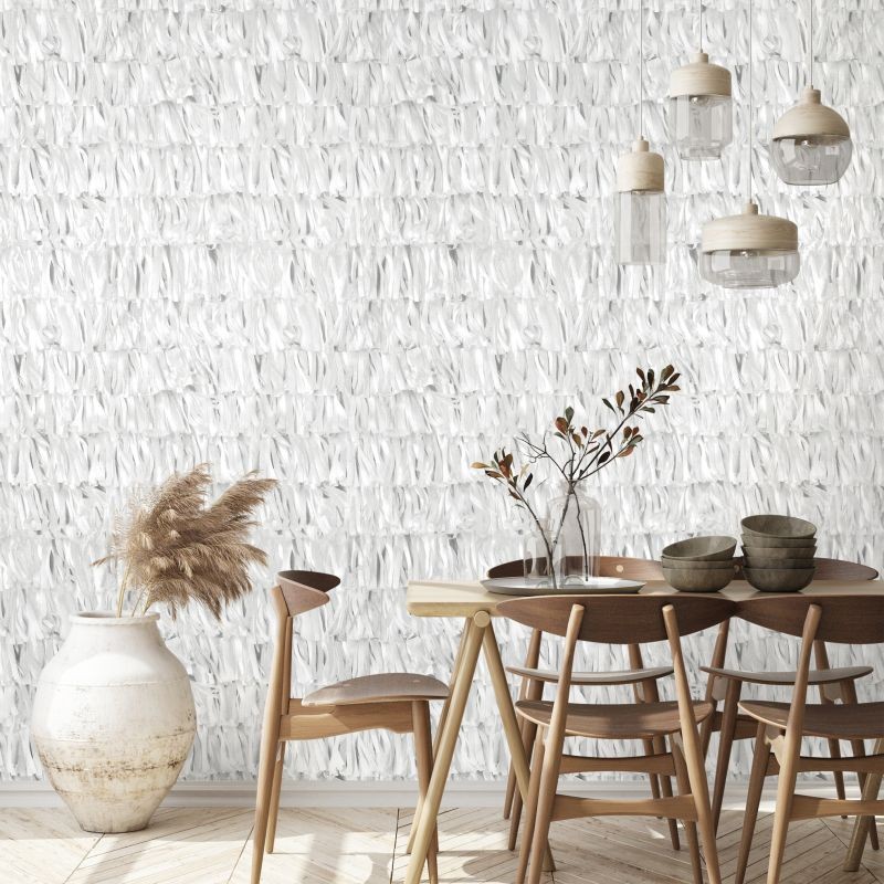 Znáte ten pocit, když si na procházce nebo v hluboké noci najednou všimnete, jak je kolem vás ticho? Žádná auta, žádné hlasy, žádné město - jen šustění listí, jemný vánek. Calma: ticho, klid větru. Toto italské slovo už jen svým zvukem nádherně popisuje tento klid. Každá hmotná nebo přírodní událost má svůj specifický zvuk. Pronikavé zvuky kovu narážejícího do sebe, vlnící se příboj, ale i tiché šumění potoka nebo šustění papíru. Jemný hedvábný papír se stal inspirací k návrhu tapety Calma. Takový papír se často používá k balení dárků, skládá se z rostlinných vláken a je vyroben ze 100% obnovitelných surovin. Balicí hedvábí lze vyhodit do sběrového papíru a recyklovat, stejně výrobky Hohenberger Tapetenmanufaktur!